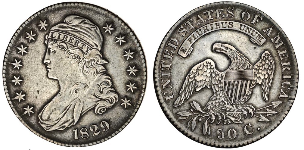 (x) United States of America, Half-Dollar, 1829, capped bust left, rev. eagle, value below, edge incuse, toned, very fine