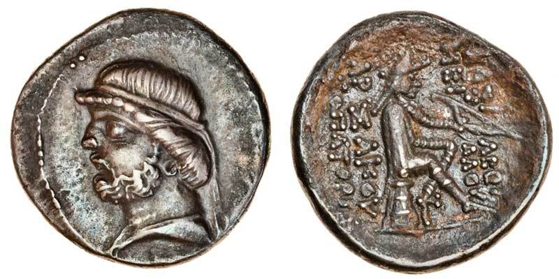 Kingdom of Parthia, Phraates II (132-127 BC), AR Drachm, 3.98g, Ecbatana, diademed head left, rev. archer seated right on omphalos, holding out bow, four-line legend (Sellwood 16.1; Sunrise 269), cabinet tone, good very fine