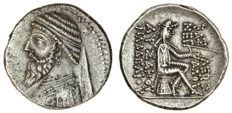 Kingdom of Parthia, Artabanos III (126-122 BC), AR Drachm, 4.68g, Ecbatana, diademed bust left, wearing regal robe, rev. archer (Arsakes I), seated right on omphalos, holding out bow (Sellwood 20.1; Sunrise 278), scarce, almost extremely fine