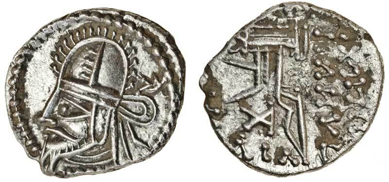 Kingdom of Parthia, Artabanos IV (AD 212-224/7), AR Drachm, 3.61g, Ecbatana, diademed bust left, with forked beard and wearing tiara, Aramaic letters behind, rev. archer seated right, holding out bow, monogram before, square five-line legend (Sellwood 89.3),