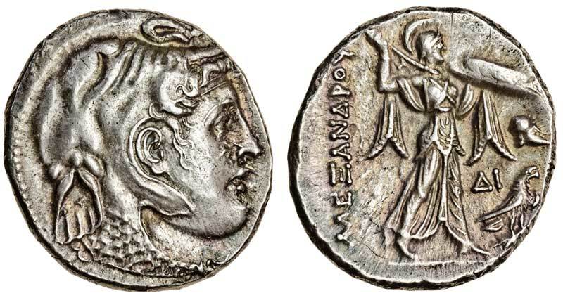 Kingdom of Egypt, Ptolemy I as Satrap (c.323-305 BC), AR Tetradrachm, 15.68g, Alexandria, c.311-305 BC, diademed head of Alexander the Great right, wearing elephant-scalp headdress, rev. AEANPOY, Athena Alkidemos advancing right, holding shield and wielding javelin, Corinthian helmet, I and eagle on right (SNG Copenhagen 30; Svoronos 169), good very fine