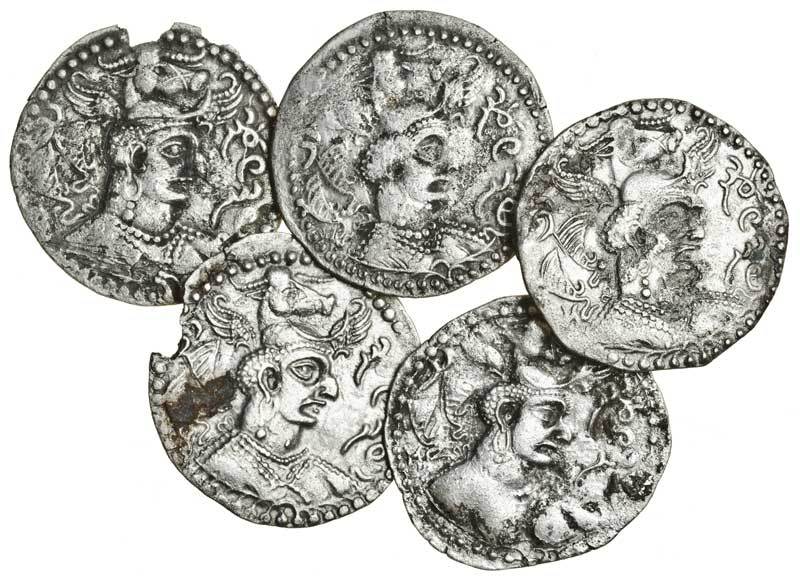 Hephthalites, 'Napki Malka' (c.475-576), Drachms (5), bust with winged headdress right, rev. fire altar with two attendants (MAC.1502-09), fine to very fine (5)