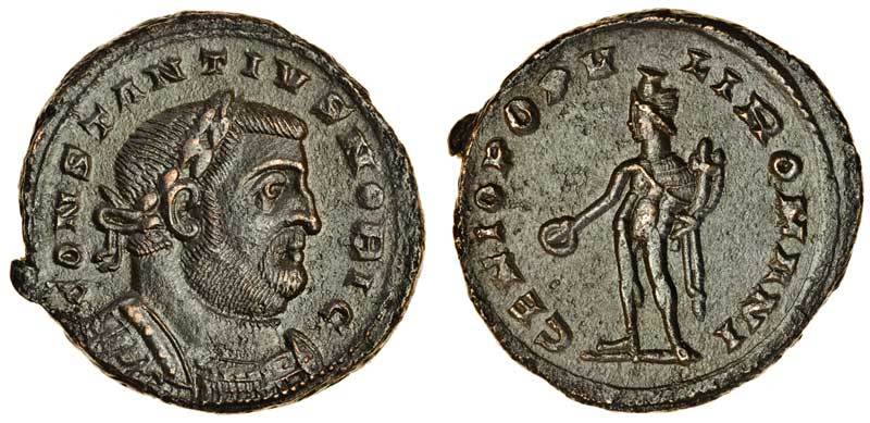 Constantius as Caesar (AD 293-305), AE Nummus (28.8 x 27.8 mm 9.61 g 6h), London mint c. AD 303-305, CONSTANTIVS NOBI C, laureate and cuirassed bust of Constantius right, rev. GENIO POPVLI ROMANI, Genius standing left holding patera and cornucopia (RIC 36A; CT 3.01.023 (this coin)), extremely fine