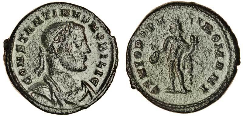 Struck soon after the death of Constantius in the latter half of 306 or before the weight reduction in May 307. These large and unreduced nummi for Constantine the Great as Caesar are very difficult to find and must have been struck for quite a short period of time.