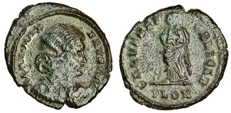 The coins of Fausta were only struck for a short time at London because the mint was closed soon after Fausta was elevated to the rank of Augusta. This coin is illustrated on the CT plate.