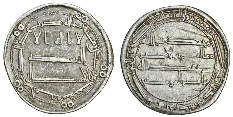 Abbasid, temp. al-Rashid, Dirham, 2.81g, Arminiya, AH175 (appears to read '195'), naming al-Ma'mun 'Abd Allah ibn amir al-mu'minin (A. 219.10), good very fine, rare one-year type for Arminiya
