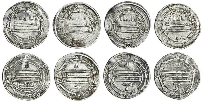 Abbasid, Dirhams (4), Madinat Isbahan, AH196, 197, both naming Harthama, 198, naming Harthama yaz, 199, with dhu'l riyasatayn, generally very fine (4)