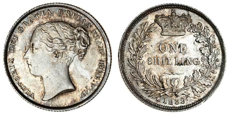 Victoria (1837-1901), Shilling, 1839, young head left, rev. value in wreath (ESC 1283; S.3904), extremely fine with some lustre