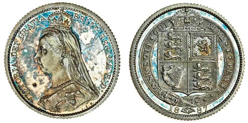 Victoria (1837-1901), proof Sixpence, 1887, Jubilee bust left, rev. crowned shield in Garter (ESC 1753; MCE 1409; S.3928), patchy toning on the brilliant surfaces, uncirculated