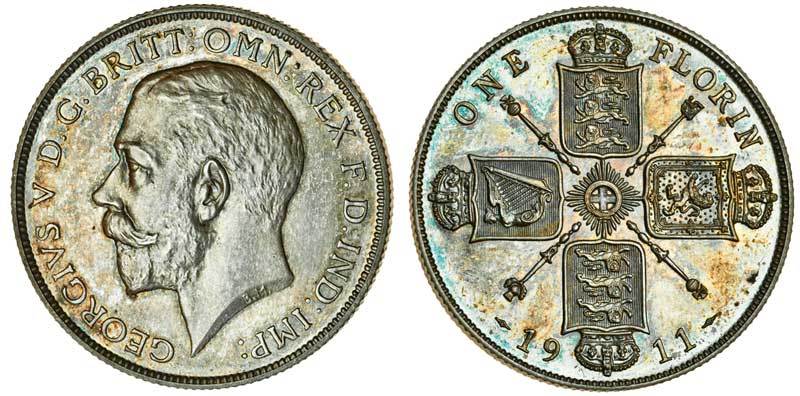 George V (1910-36), proof Florin, 1911, bare head elft, rev. four crowned shields cruciform (ESC 930; S.4012), light tone, some cabinet friction but uncirculated