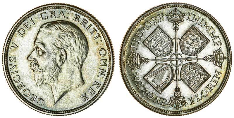 George V (1910-36), proof Florin, 1927, bare head left, rev. four crowned shields cruciform (ESC 947; S.4038), light tone, uncirculated