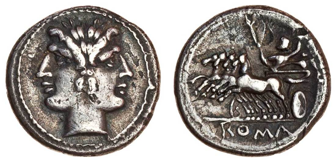 Roman Republic (c.225-212 BC), AR Drachm, laureate Janiform heads of the Dioscuri, rev. Jupiter in quadriga left, driven by Victory, hurling thunderbolt and holding sceptre, ROMA in exergue (RRC 29/4; Sydenham 65), very fine