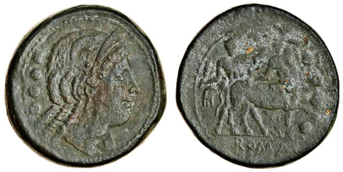 Roman Republic (c.217-215 BC), AE Triens, 42.85g, diademed female head right, four pellets behind, rev. Hercules attacking centaur right, four pellets on right, ROMA in exergue (RRC 39/1; Sydenham 93), olive-green patina, almost very fine, reverse good fine, rare