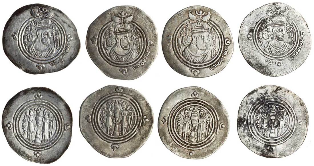 Arab Sasanian, 'Umar bin 'Ubayd Allah, Drachms (4), bys (Bishapur), AH68, 70 (2), art (Ardashir Khurra), AH70 (A.21; Eshragh 115, 127), the last with some reverse staining, generally very fine (4)