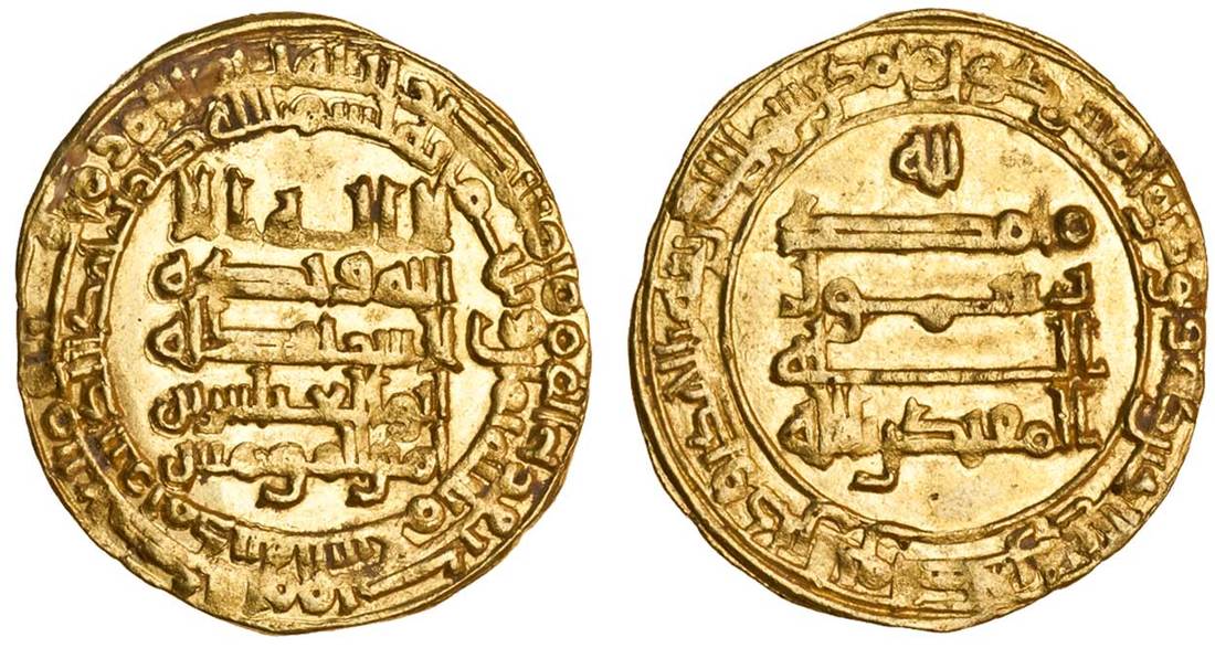 Abbasid, al-Muqtadir (908-32), AV Dinar, 4.58g, Madinat al-Salam, AH308, naming heir Abu'l 'Abbas below obverse legend (Bernardi 242Jh; A.245.2), extremely fine
