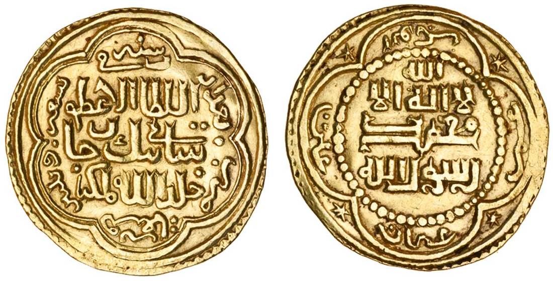 Ilkhans, Sati Beg (1338-39), AV Dinar, 3.02g, type B, Baghdad, AH739, legend in hexafoil, rev. kalima within beaded circle, names of the Rashidun around within quatrefoil frame (A. K2231; Diler Sa 721), one minor flat spot on edge, otherwise extremely fine, exceptionally well struck and very rare
