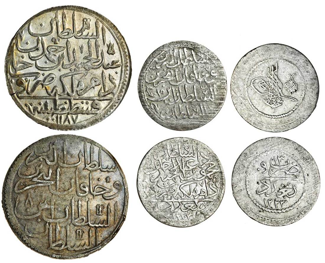 (x) Ottoman Empire, Mahmud II, Piastre (40-Para), 4.47g, Baghdad, AH1223 / 13, 30-Para (Zolata), 3.75g, Baghdad, AH1223 / 15 (1821) (KM.53, 57), both full flan with some adjustment marks, about fine to fine, scarce, Abdul Hamid (1774-89), 2-Zolota, AH1187 / 8 (KM.402), extremely fine (3)