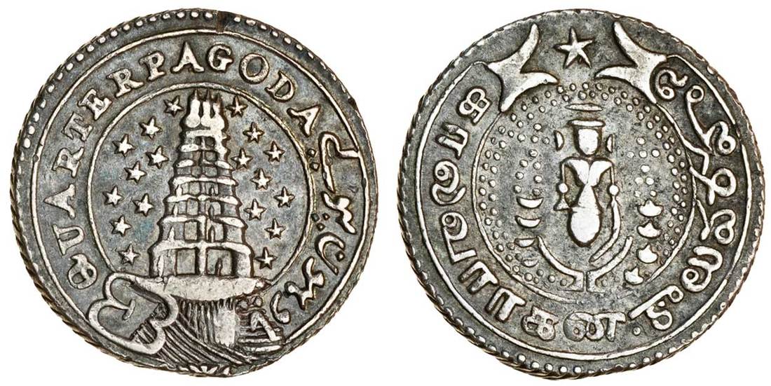 (x) India, East India Company, Madras Presidency, Quarter-Pagoda (second issue, 1808), no stop between quarter and pagoda (Pr.173; KM.352), very fine
