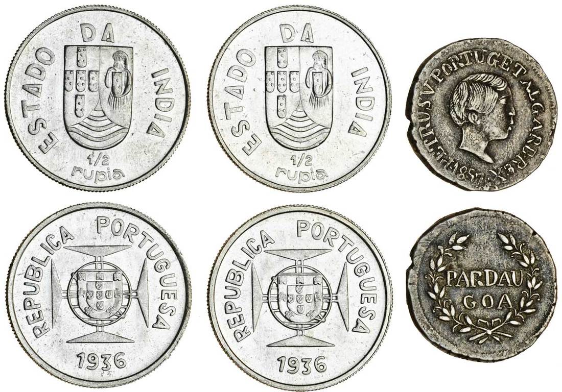 (x) Portuguese India, Goa, Pedro V (1853-61), Pardao, 1857, head right, rev. denomination within a wreath (KM.278; Gomes 07.02), attractive very fine, Portuguese Republic, Cu.Ni. Half-Rupees (2), 1936 (KM.23; Gomes 07.01), about uncirculated (3)
