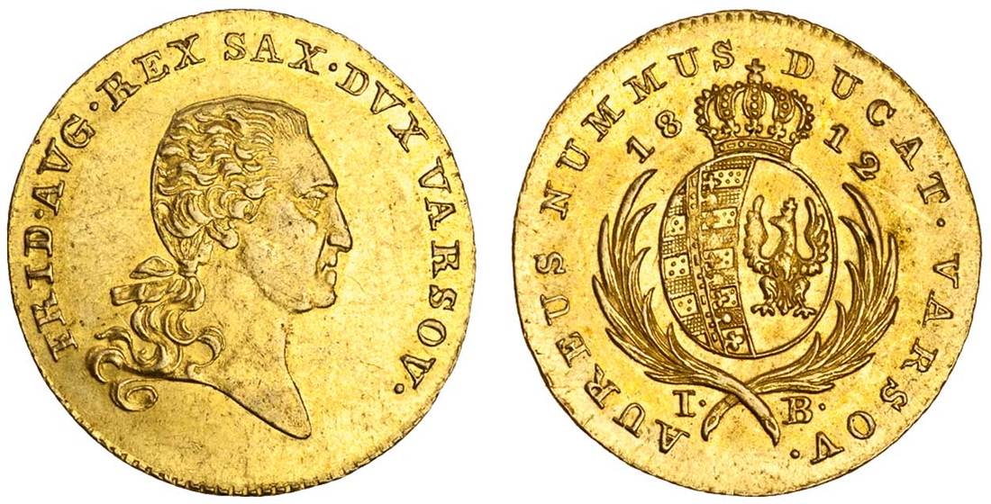 Poland, Duchy of Warsaw, Friedrich August, Ducat, 3.50g, 1812, head right, rev. crowned shield in palms, i-b (for Jacob Benick) below (F.68; HCz.3469), extremely fine