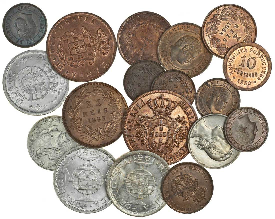 Portugal, AE 20-Reis, 1883, 10-Reis (4), 1785, 1841, 1883, 1891, 5-Reis (6), 1867, 1882 (2), 1892, 1906, 1910, 3-Reis, 1875, Republic, cu.ni. 5-Escudos, 1943, cu.ni. 4-Centavos, 1917, AE 10-Centavos, 1930 (KM.280, 481, 517, 526, 527, 530, 532, 555, 566, 573, 581), the cupro-nickel extremely fine, the copper mostly uncirculated or nearly so, with lustre, Angola, cu.ni. 20-Escudos, 1955 (KM.74), uncirculated, Macau, cu.ni. 5-Patacas, 1952 (KM.5), uncirculated, Saint Thomas, cu.ni. 10-Escudos, 1951 (KM.14), uncirculated (18)