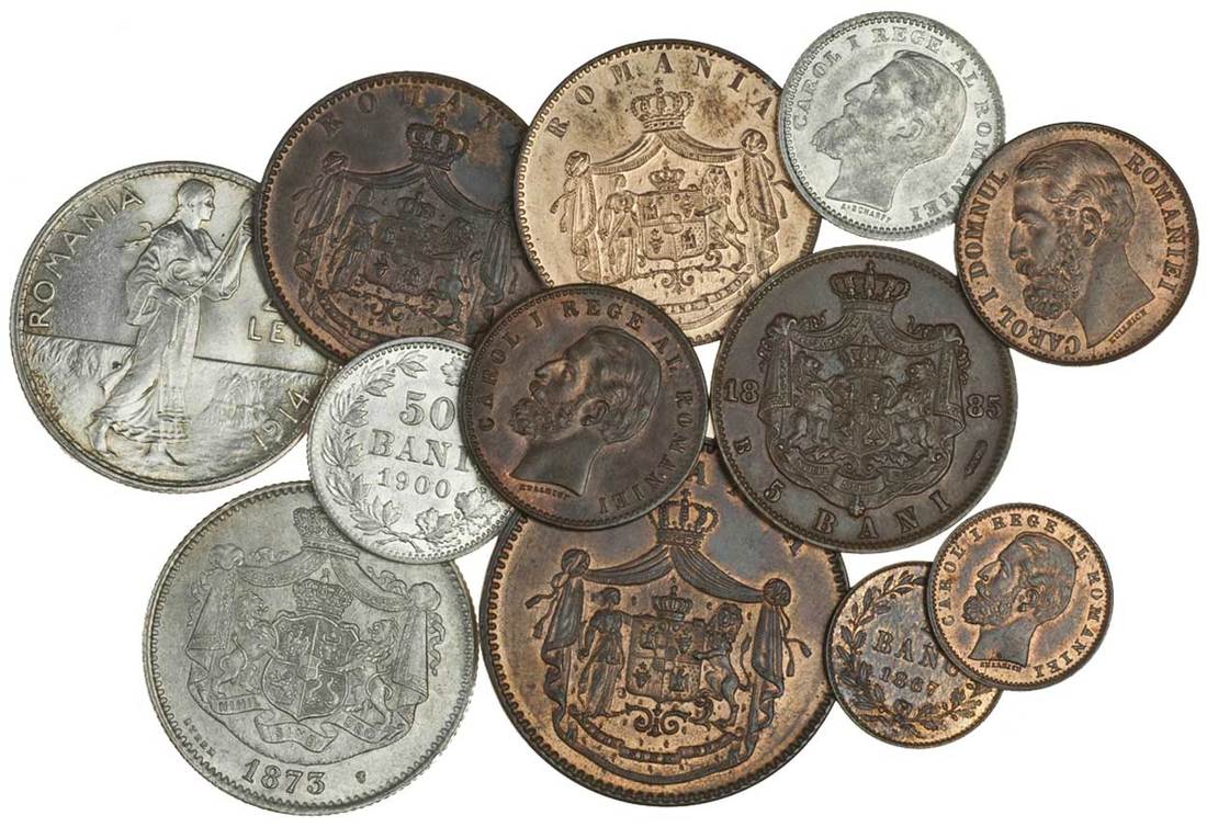 Romania, 2-Lei (2), 1873, 1914, 50-Bani, 1900 (2), AE 10-Bani, 1867, Watt & Co, 5-Bani (3), 1867 (2) Heaton and Watt & Co, 1885, 2-Bani, 1880, 1882, Banu, 1867 h, Ban, 1900 (KM.1.1, 3.1, 3.2, 4.2, 8, 11.2, 18, 19, 23, 26, 43), extremely fine to uncirculated (12)
