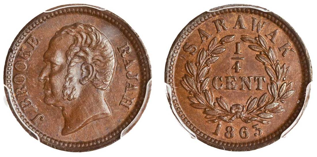 (x) Sarawak, British Protectorate, Rajah Charles Brooke (1868-1917), AE Quarter-Cent, 1896 H (KM.4), in PCGS slab, graded MS63RB