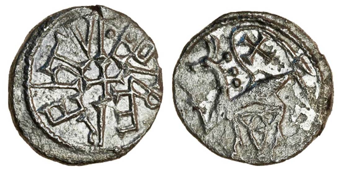 (x) Northumbria, Eadberht (737-58), Sceatta, 1.00g, small cross, eotberhtvf around, no inner circle, rev. stylized stag left, cross above, triquetra below (N.178; S.847), small knock at 12 o'clock, some corrosion to reverse, lustre evident, sharp obverse, extremely fine/very fine