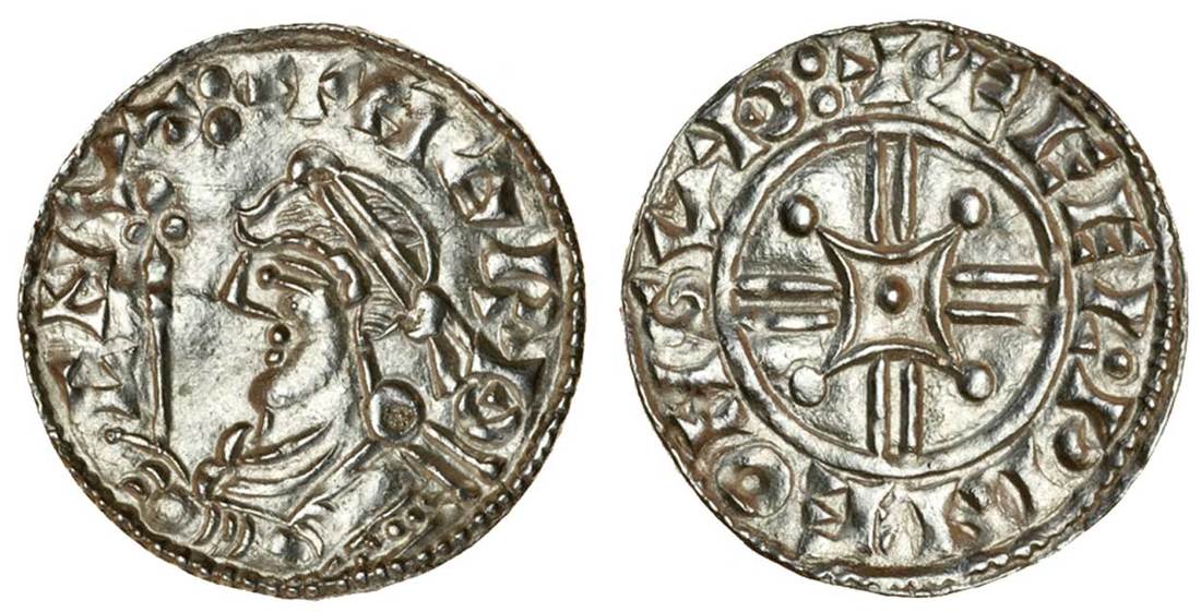 Harthacnut (1040-42), Penny, 1.14g, Arm and sceptre type in the name of Harthacnut, Southwark, Aegelwine, draped and diademed bust left holding trefoil tipped sceptre, +harÐcnvt, rev. aegelpine on svÐ:, lozenge with incurved sides, pellet on tips, all around central pellet, over voided short cross (SCBI 40 Stockholm, No.1707; N.811; S.1168), very light undulation on periphery by CNVT, a remarkably fine piece, full and centred, sharp bust and legends, plenty of lustre on this, as struck and extremely fine