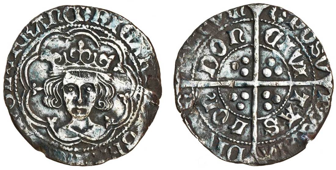 Richard III (1483-85), Groat, 2.97g, m.m sun and rose 1, crowned bust facing, fleurs on cusps except above crown and on bust, saltire stops, rev. long cross, three pellets in angles, chevron barred a, saltire stops (N.1679; S.2154), metal bright through cleaning, peripheral knock at 7 o'clock and edge split at 3, sharp bust on this, full sun and rose mintmark and RICARD, very fine, scarce
