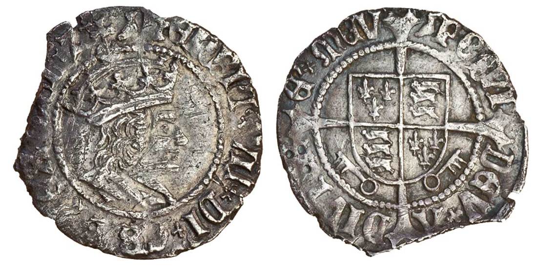 (x) Henry VII (1509-47), regular profile coinage, Halfgroat, 1.20g, York, m.m. martlet, portrait of Henry VII, rev. shield over long cross fourchée, keys below shield (N.1769; S.2262), edge chipped between 9 and 12 o'clock, otherwise nearly very fine