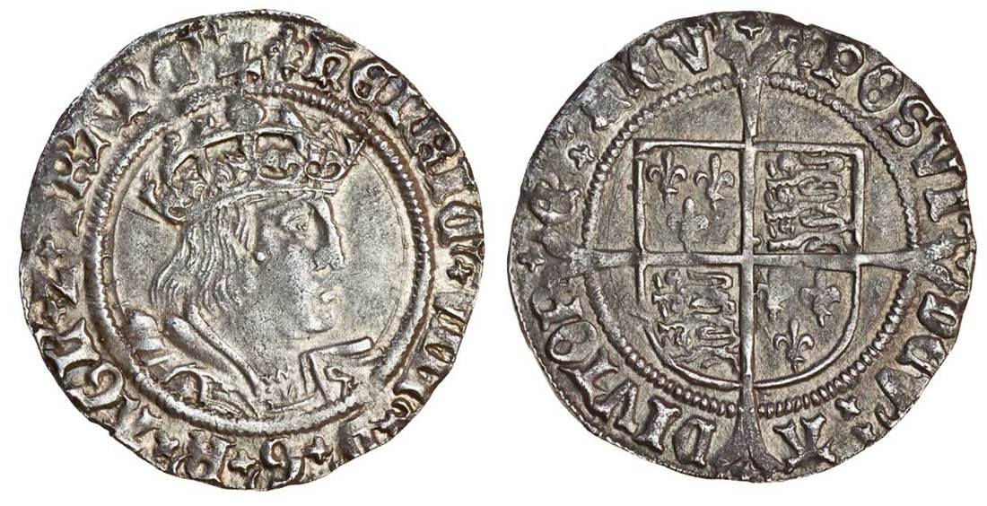 (x) Henry VIII (1509-470, second coinage, Groat, 2.66g, m.m. lis both sides, crowned bust right, Laker bust D, rev. shield over long cross fourchée, crosslet in cross ends (N.1797; S.2337E), good very fine