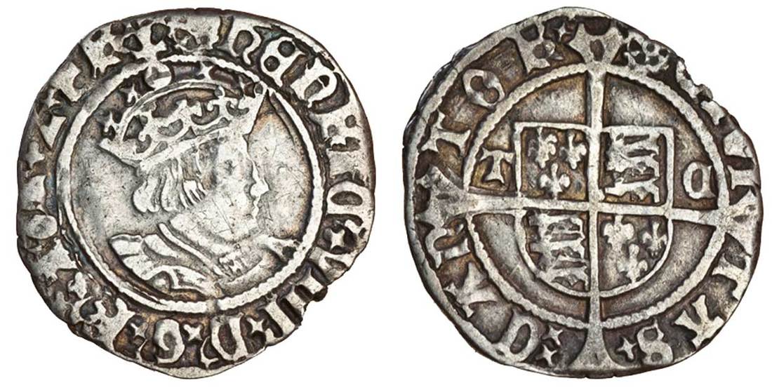 (x) Henry VIII (1509-47), second coinage, Halfgroat, 1.31g, Canterbury, m.m. catherine wheel both sides, crowned bust right, rev. shield over long cross fourchée, T-C beside shield (N.1804; S.2345), edge chipped between 4 and 5 o'clock, good fine