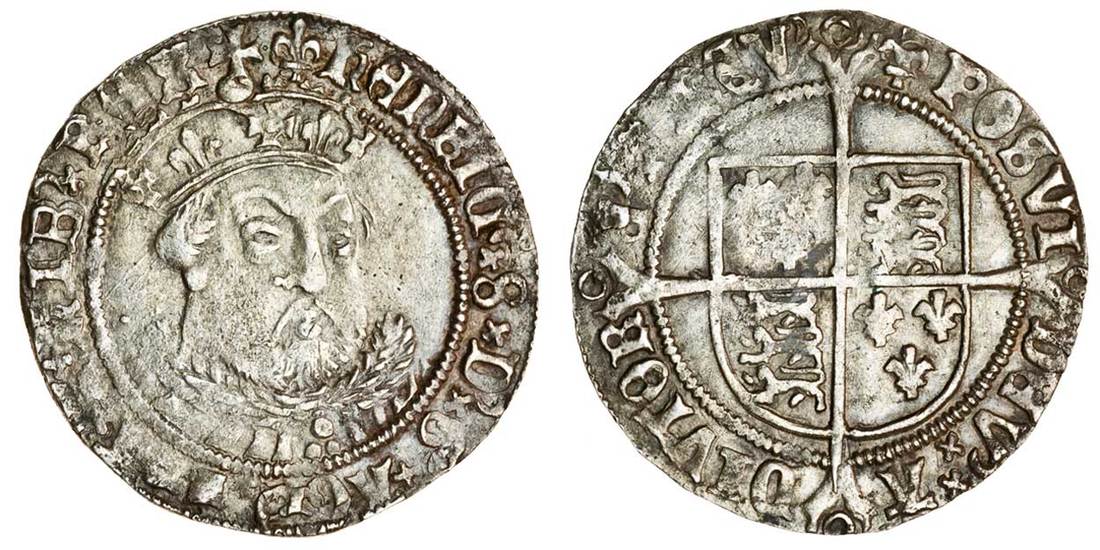 Henry VIII (1509-47), third coinage 1544-47, Groat, 2.32g, Tower, m.m. lis, crowned and bearded bust three-quarters left, , rev. shield over long cross fourchée (N.1844; S.2369), first quarter of shield weak, very fine with a strong portrait