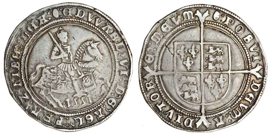 Edward VI (1547-53), fine silver issue 1551-53, Halfcrown, 15.23g, 1551, m.m. tun, king on horseback right, rev. shield over long cross fourchée (N.1935; S.2480), about very fine