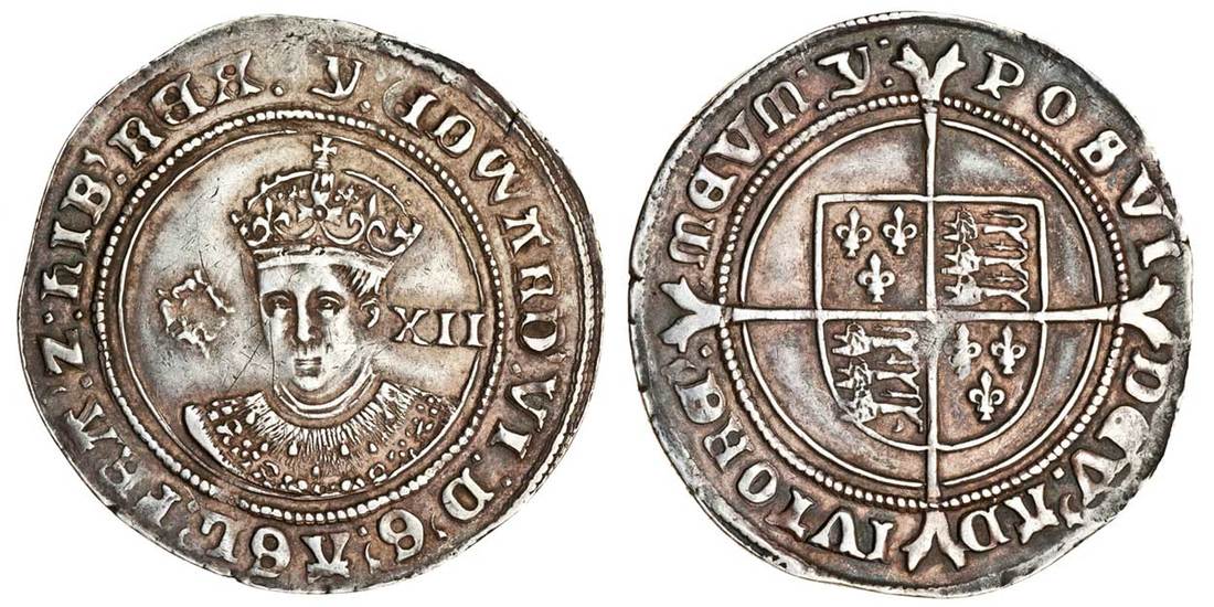 Edward VI (1547-53), fine silver issue 1551-53, Shilling, 5.92g, m.m. y, crowned bust, rev. shield over long cross fourchée (N.1937; S.2482), cleaned, now with some toning, very fine