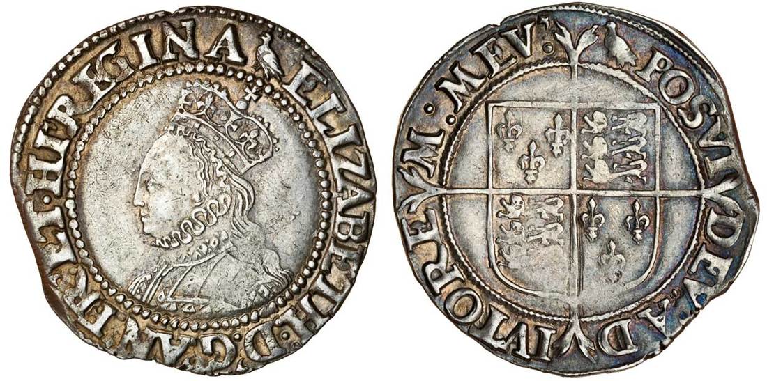 Elizabeth I (1558-1603), second issue 1560-61, Shilling, 6.18g, m.m. martlet, crowned bust left, rev. shield over long cross fourchée (N.1985; S.2555), edge pushed in between 6 and 9 o'clock, very fine