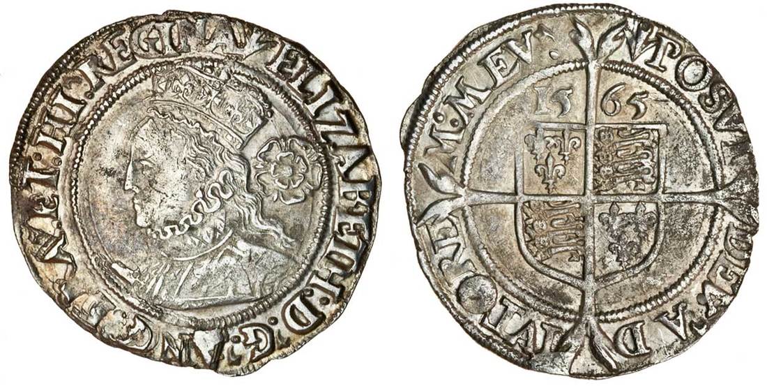Elizabeth I (1558-1603), third and fourth issues 1561-77, Sixpence, 3.16g, 1565, m.m. pheon, crowned bust left, rev. date above shield over long cross fourchée (N.1997; S.2561B), cleaned, nearly very fine