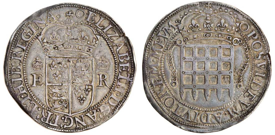 (x) Elizabeth I (1588-1603), portcullis money, 8-Testerns, 27.11g, m.m. O, crowned shield dividing crowned E-R, rev. crowned portcullis (Pridmore 1; S.3607A), marks on edge, good very fine, very rare