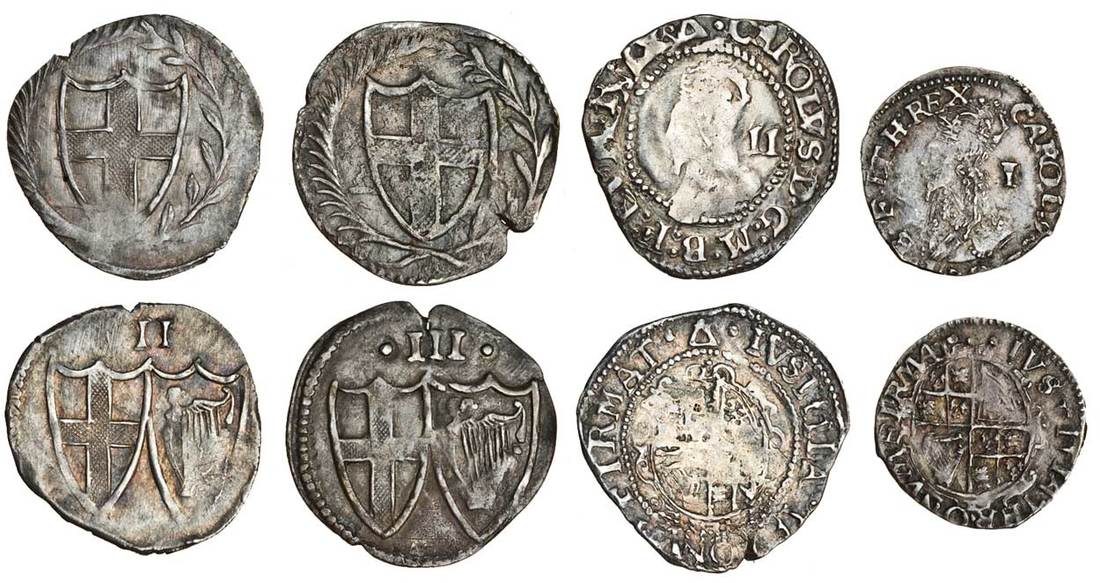(x) Charles I (1625-49), Twopence, Penny, Commonwealth, Threepence, Twopence, 0.50g, 0.92g, 0.86g, 0.88g, the Threepence a contemporary (?), forgery, fine - very fine (4)