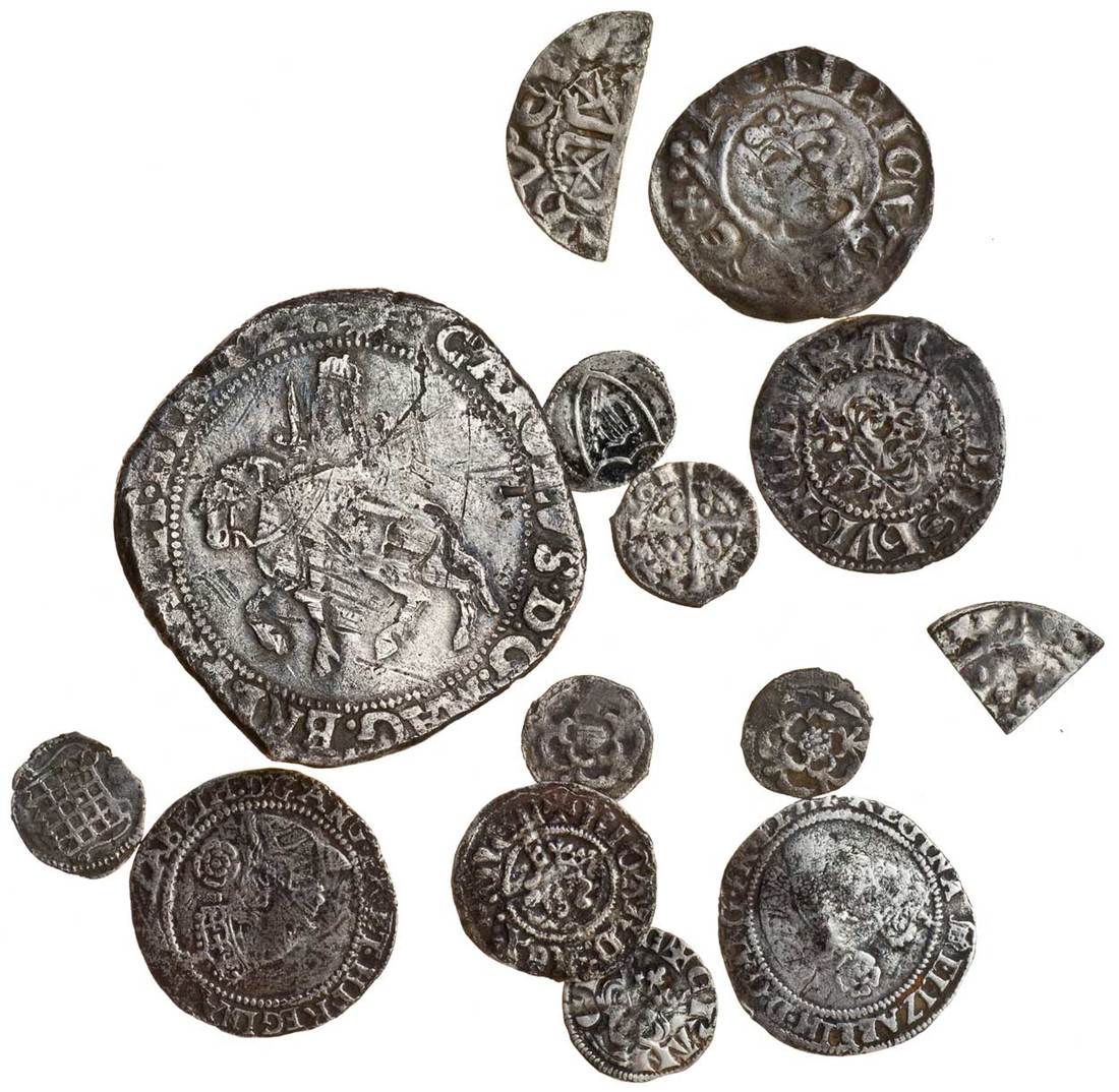 English hammered (14), from Henry II to Charles I, various denominations and reigns represented including a couple of cut fractions of Scotland, mostly smaller silver, includes a scarce Edward I Farthing of Lincoln, fine to nearly very fine (14)