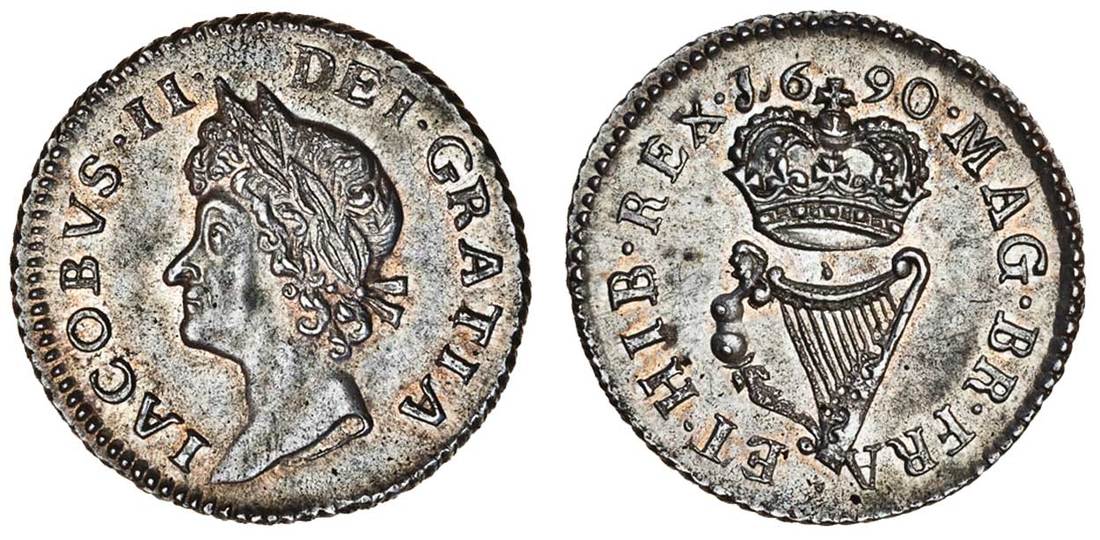 Ireland, James II (1685-91), proof silver Halfpenny, 1690, laureate head left, rev. crowned harp, milled edge (S.6591A), extremely fine, with lustre, rare