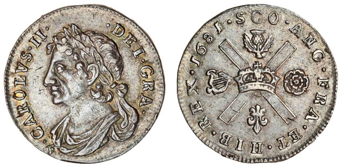 (x) Scotland, Charles II (1660-85), Sixteenth-Dollar, 1681, laureate and draped bust left, rev. St Andrew's ross, emblems in angles (S.5624), good very fine