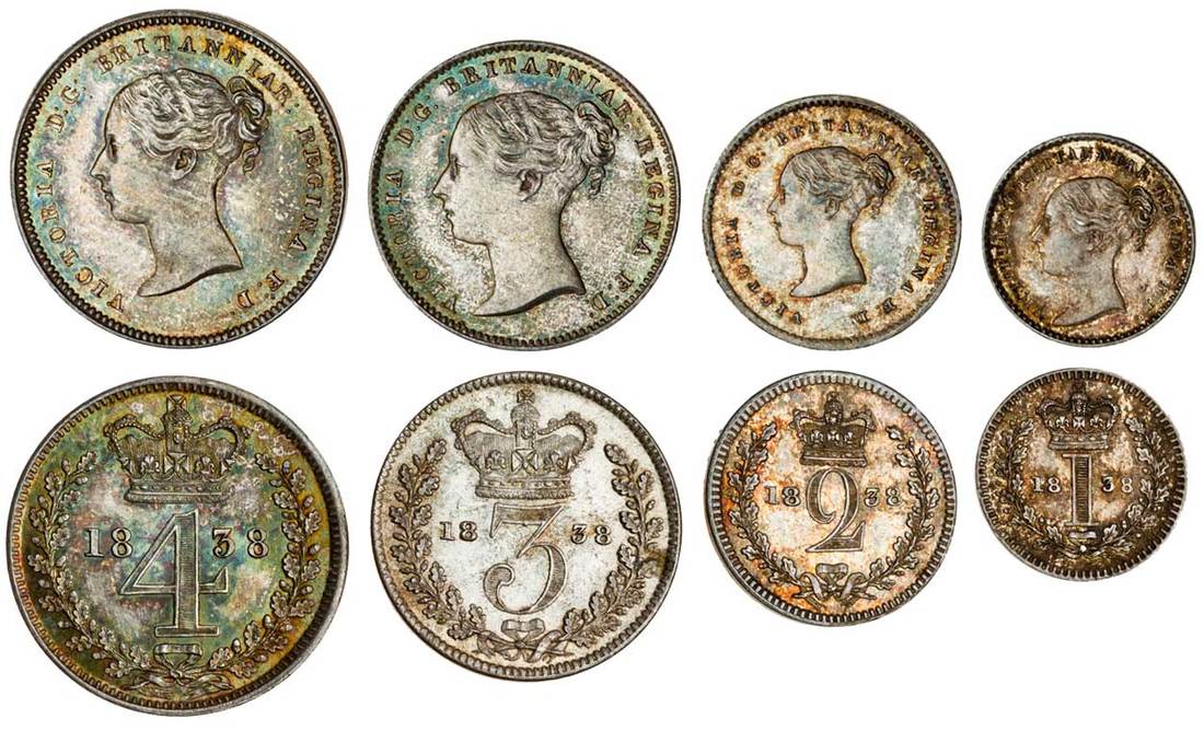 Victoria (1837-1901), Maundy Set, 1838, young head (ESC 2445; S.3916), good extremely fine (4)