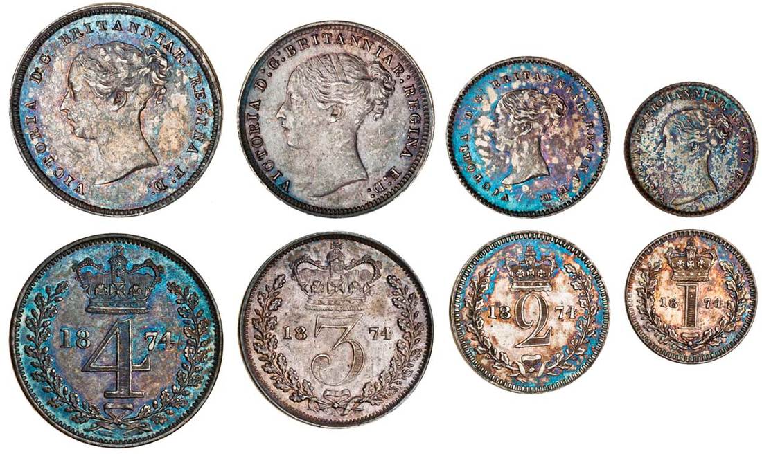 Victoria (1837-1901), Maundy Set, 1874, young head (S.3916), extremely fine (4)