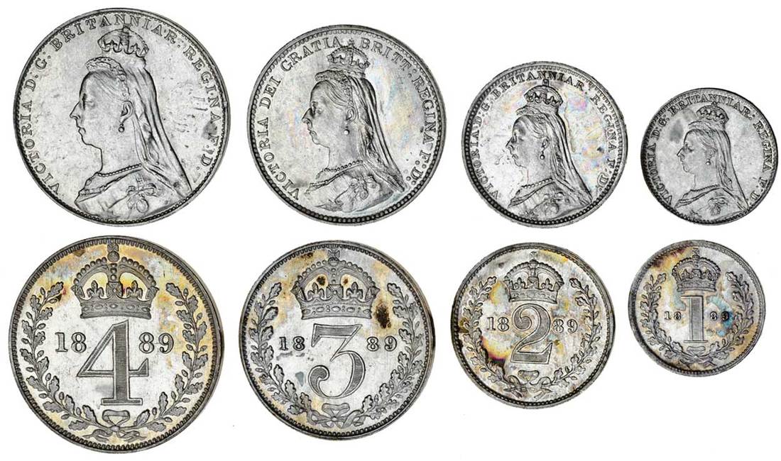 Victoria (1837-1901), Maundy Set, 1889, Jubilee head, rev. value (ESC 2504; S.3932), good extremely fine, scarce (4)