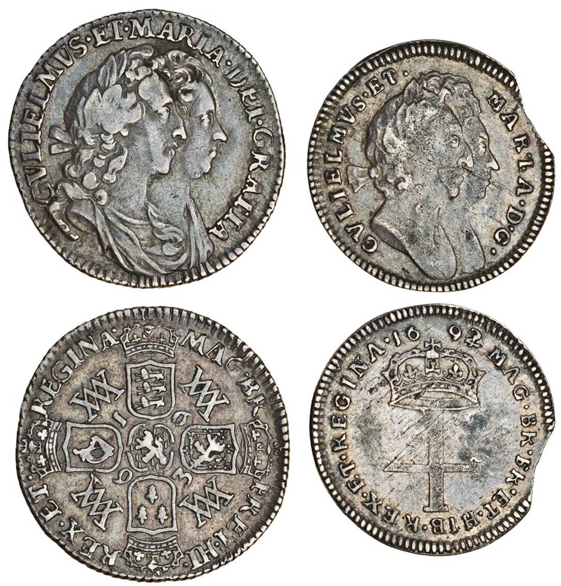 (x) William and Mary (1688-94), Sixpence, 1693, conjoined busts right, rev. four crowned shields cruciform (ESC ESC 1529; S.3438), very fine