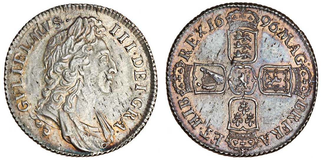 (x) William III (1694-1702), Shilling, 1696, laureate and draped bust right, rev. four crowned shields cruciform (ESC 1078; S.3497)|, light haymarking, lustrous, about extremely fine