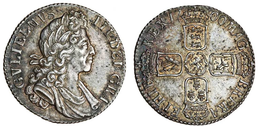 (x) William III (1694-1702), Shilling, 1700, laureate and draped bust right, rev. four crowned shields cruciform (ESC 1121; S.3516), light tone and with lustre, about extremely fine