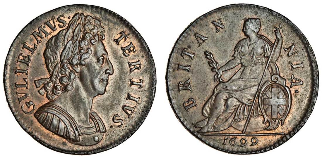 William III (1694-1702), Halfpenny, 1699, laureate and cuirassed bust right, rev. Britannia seated left (Peck 687; S.3554), extremely fine, scarce